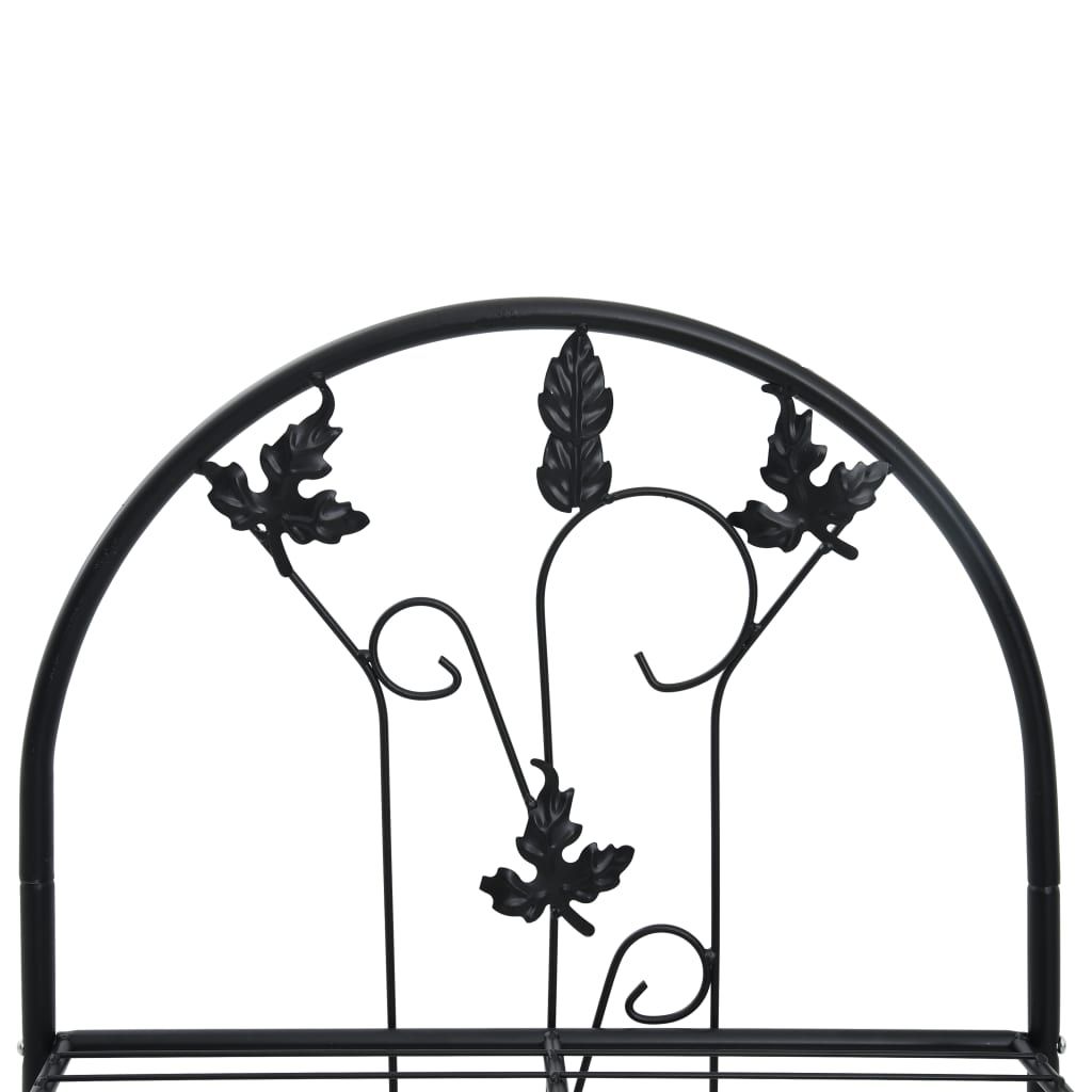 Organize your plants stylishly with this 3 Layer Black Iron Plant Rack featuring elegant leaf decorations. The sturdy iron construction ensures durability, while its decorative design adds charm to any space. It includes a preventive tip-over attachment for added stability and safety. Perfect for patios, living rooms, or gardens, this rack provides ample display space. Its sleek black finish complements a variety of interior and exterior styles.