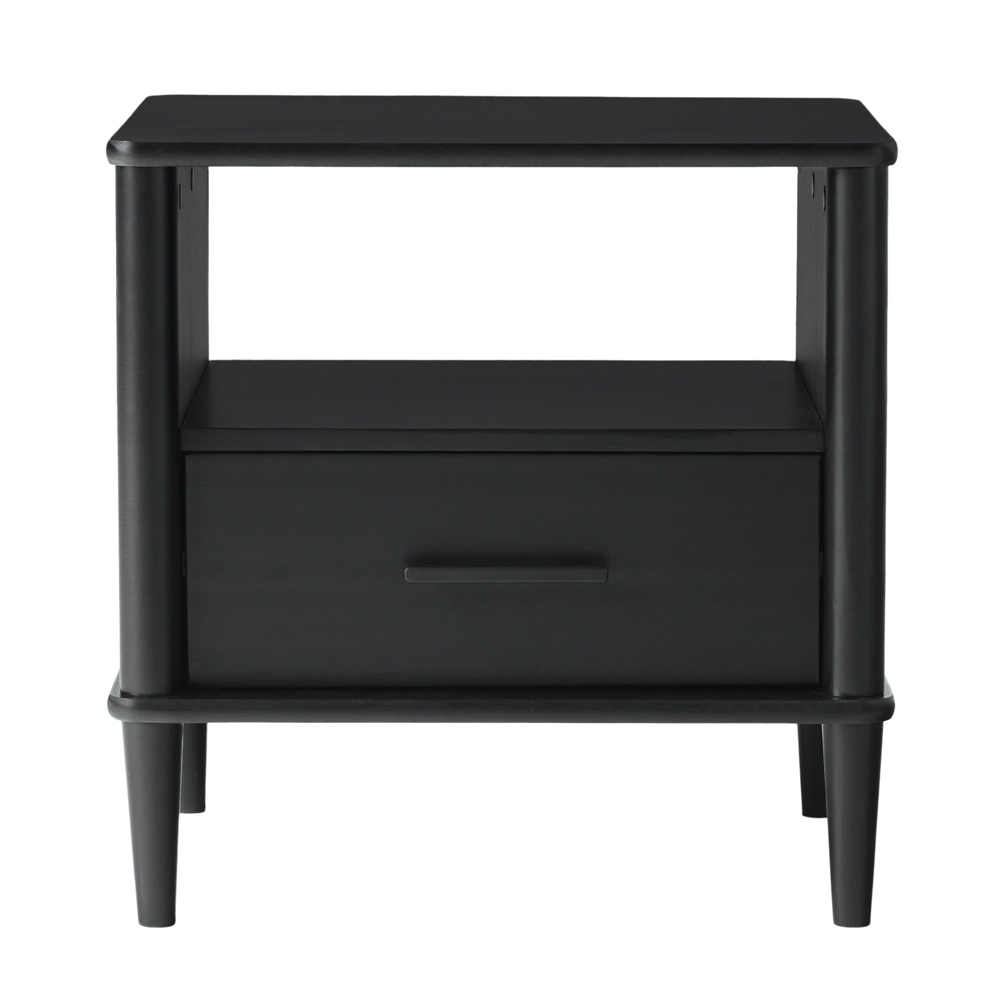 Black Transitional Solid Wood Spindle Nightstand with 1 Drawer and Open Shelf for Storage or Display