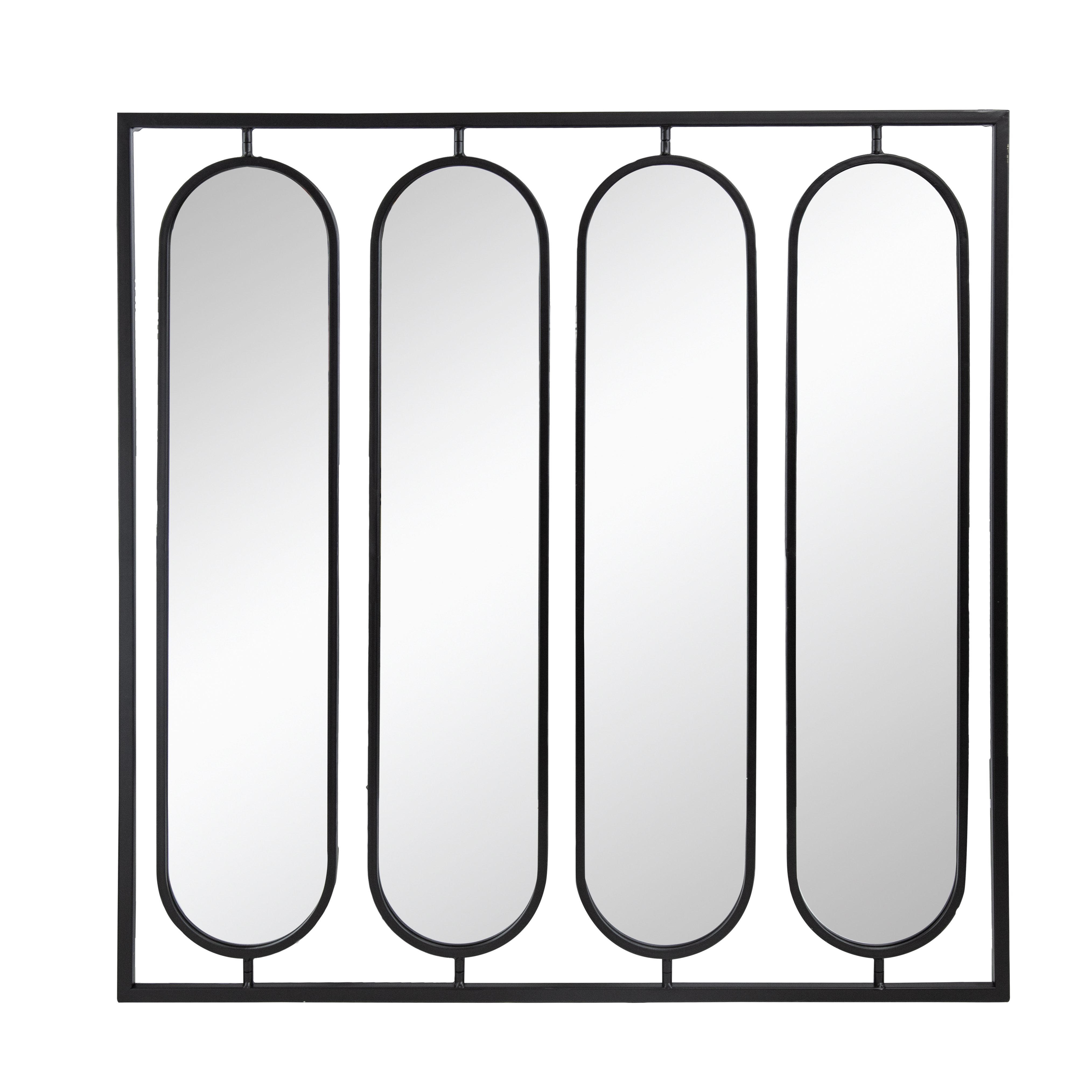This modern wall mirror features four vertically aligned, long oval-shaped mirrors encased in a bold black square metal frame. Each mirror is independently mounted with a swivel function, allowing you to adjust the angles for light reflection or visual interest. The clean geometric structure creates a striking focal point, ideal for contemporary and industrial spaces. Whether used in a hallway, bedroom, or above a console, this piece adds both utility and sculptural elegance. Its interactive design and versatile look make it a standout addition to any wall.