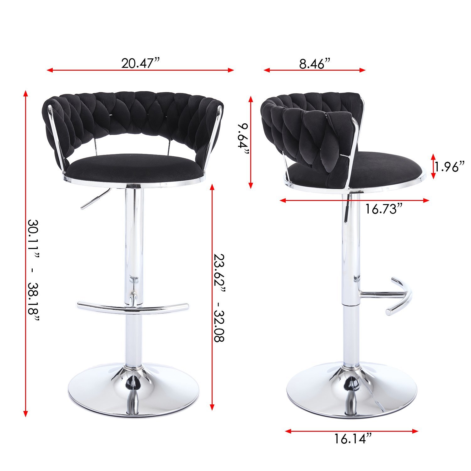 Bring sleek sophistication and plush comfort to your kitchen island or home bar with this Set of 2 Black Velvet Bar Stools. Featuring a rich black velvet upholstery, these stools are designed with a circular curved backrest for enhanced support and a modern aesthetic. The polished chrome base and integrated footrest add a touch of shine while ensuring lasting durability. Adjustable height and smooth 360-degree swivel functionality make these stools versatile for a variety of counter and bar setups. Perfect for contemporary, glam, or transitional spaces, these velvet bar stools elevate any entertaining area with luxurious style and everyday practicality.
