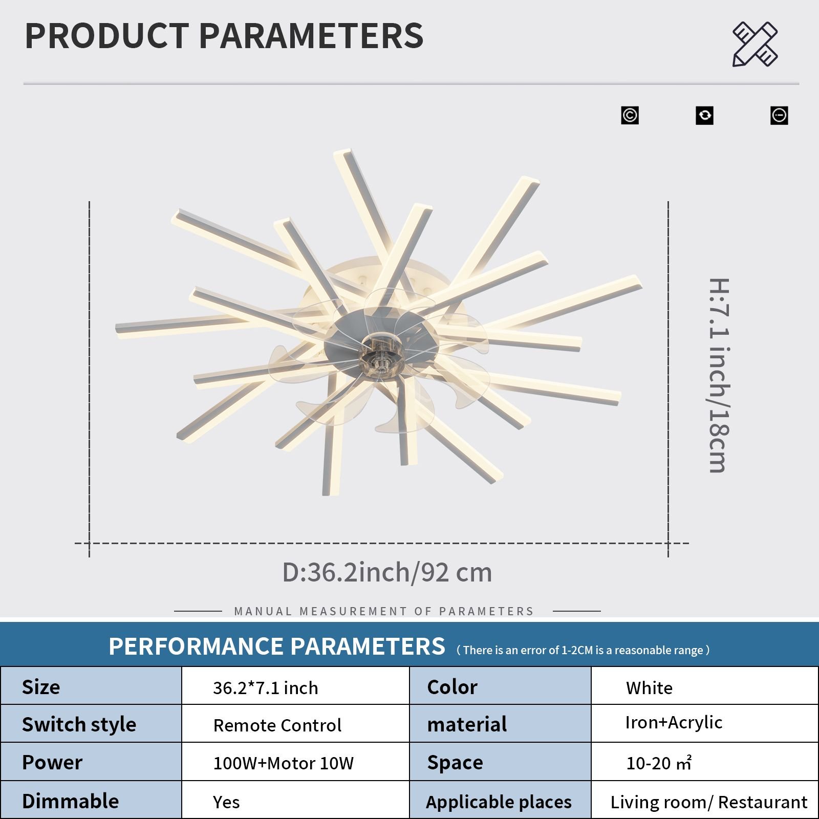 This modern ceiling light fan combines illumination and airflow in a sleek, multifunctional design. With six adjustable wind speeds, it provides personalized comfort all year round. The integrated LED light offers bright and energy-efficient lighting suitable for bedrooms, living rooms, or offices. The included remote control allows you to conveniently manage fan speed, light settings, and timer options from anywhere in the room. Its quiet motor and compact structure make it ideal for both large and small spaces.