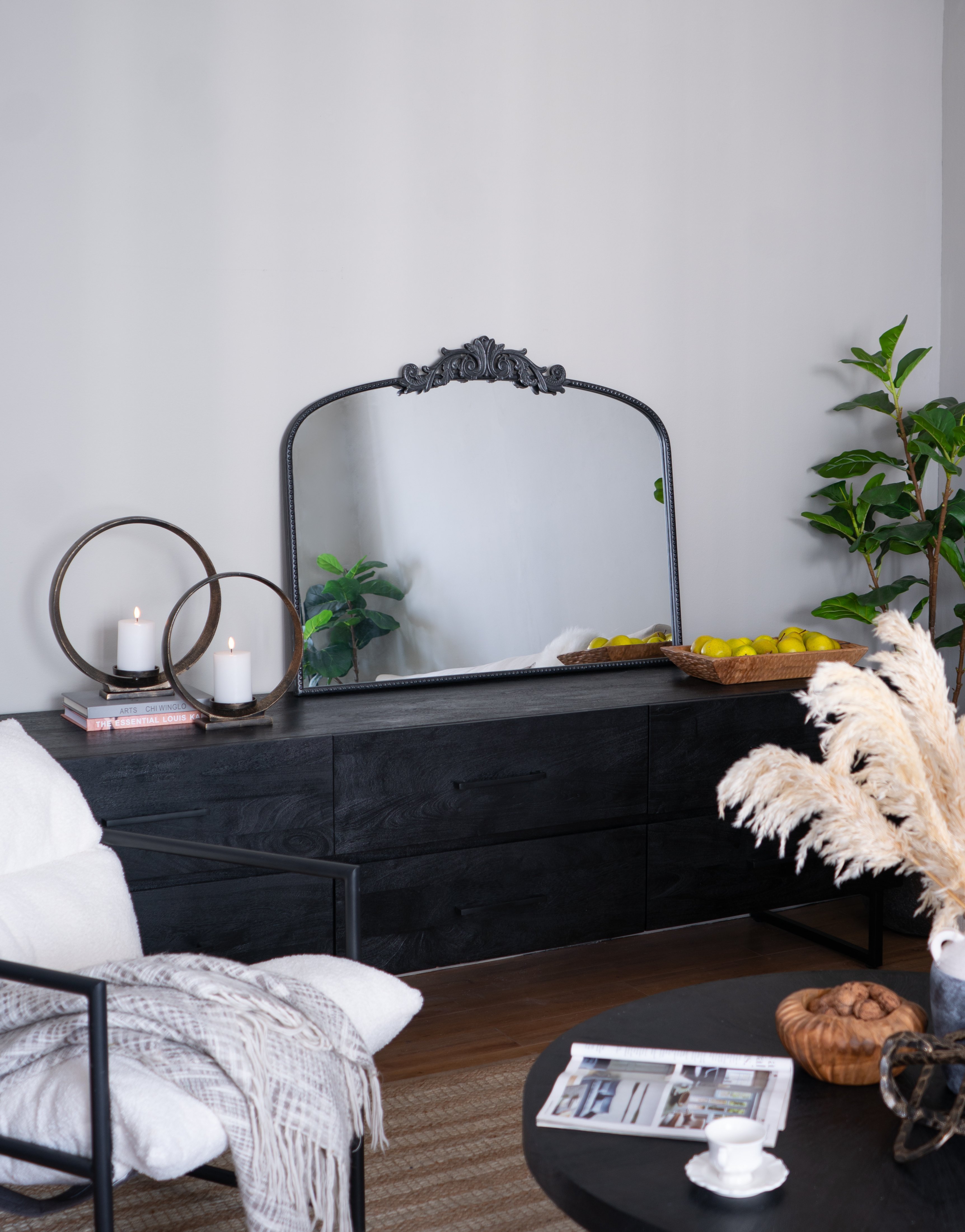 Home > 40” Large Arch Classic Design Mirror with Baroque Inspired Frame and Custom Protected Inlaid Glass
