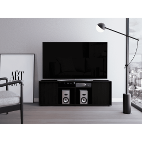 Sleek Glossy White Entertainment Center/TV Stand with 2 Open Bottom Shelves, 2 Side Storage Compartments, 16 Color LED with Remote Control