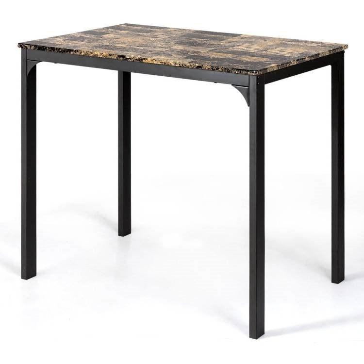Modern 3-Piece Dining Set Brown Faux Marble Table-Top and 2 Black Chairs Stools
