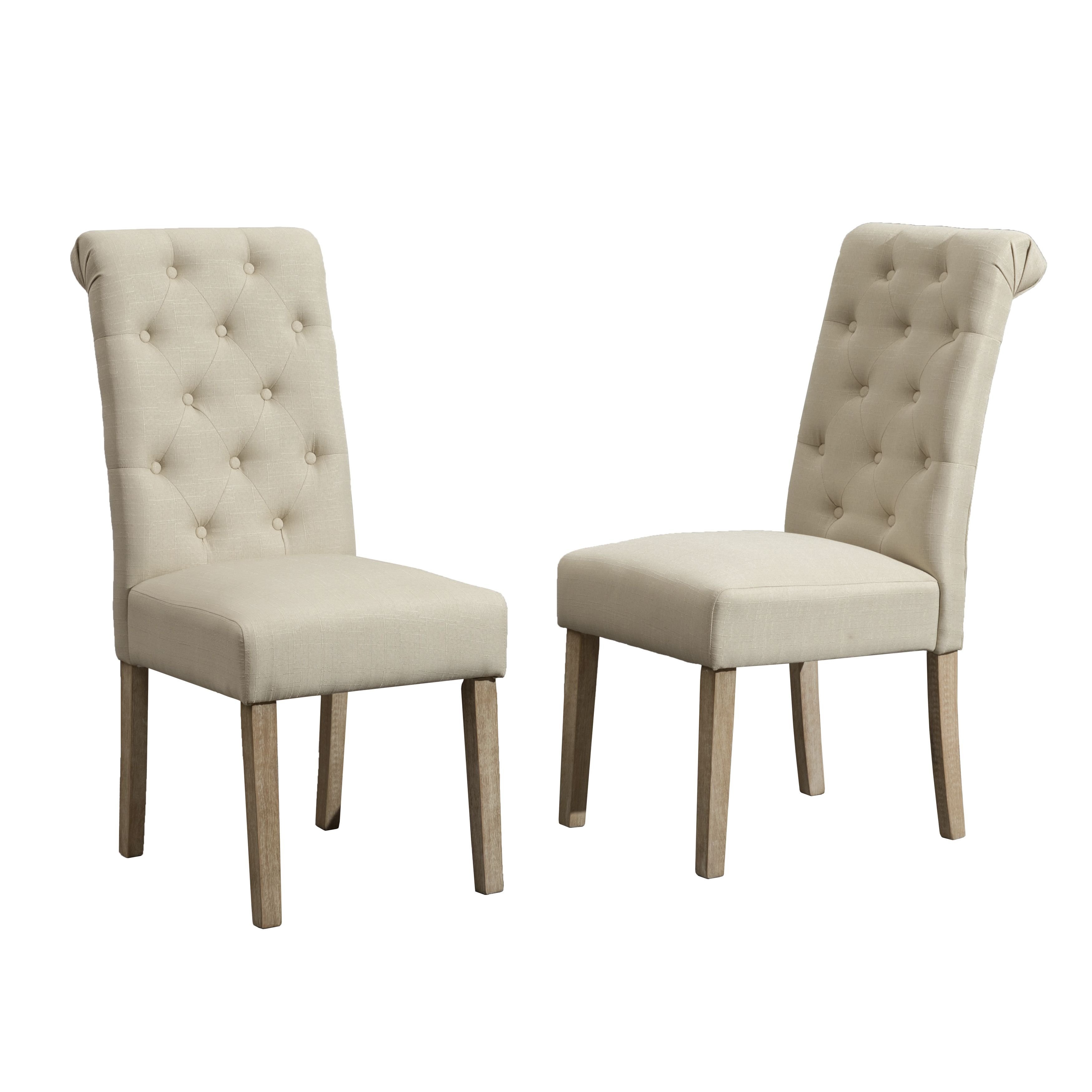 Home > Set of 2, Tan Habit Solid Wood Dining Chairs with Button Tufted Parsons Backrest
