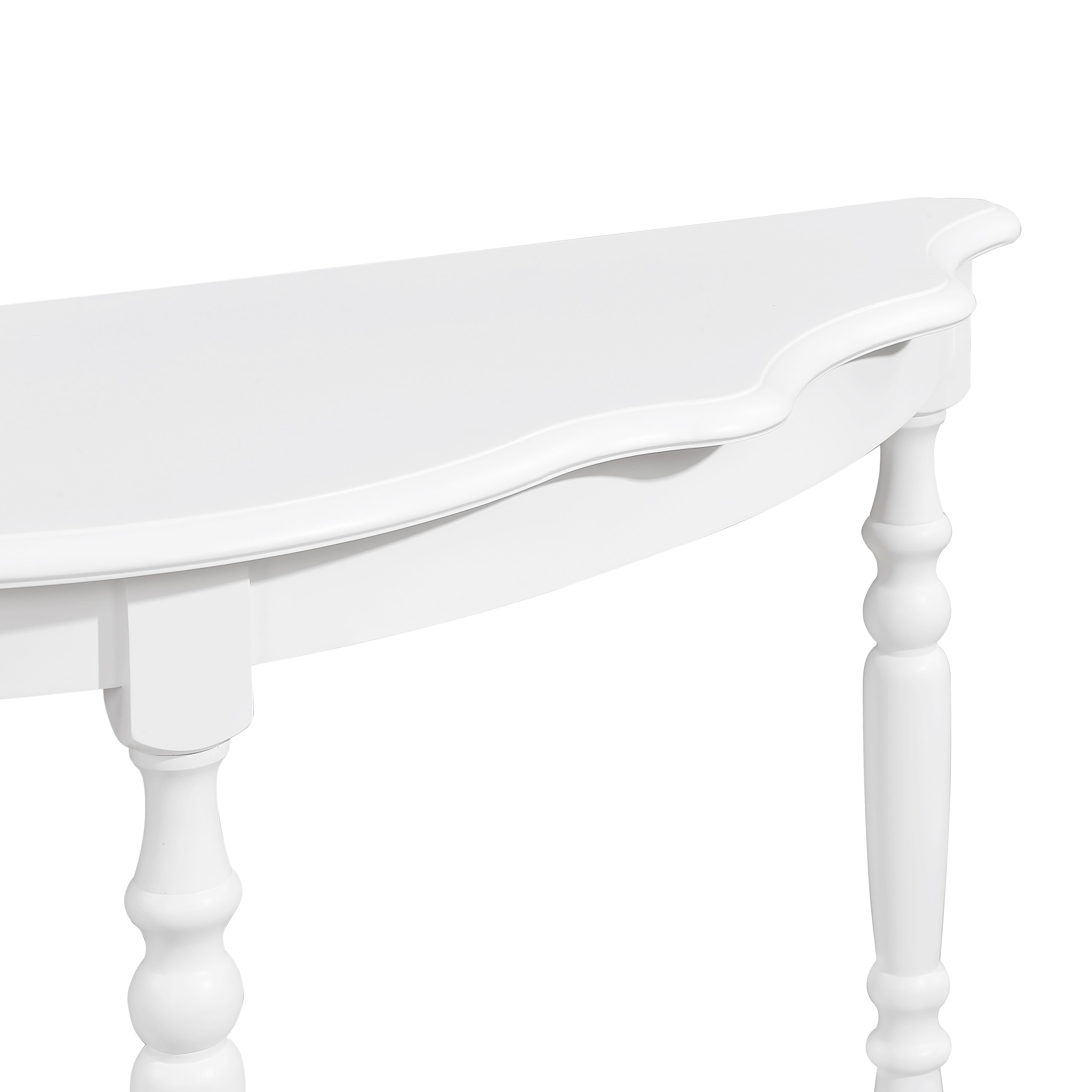 Bring a touch of retro charm and modern elegance into your home with this curved half-moon white console table. Designed with a unique cloud-inspired tabletop, it creates a stylish focal point for entryways, living rooms, or hallways. The open bottom shelf offers additional space for storage or display, keeping your home organized and visually appealing. Crafted with a sleek curved silhouette, this console table blends seamlessly with transitional, contemporary, or vintage-inspired décor. Perfect for showcasing decorative accents, books, or plants, it elevates your interior with functional style.