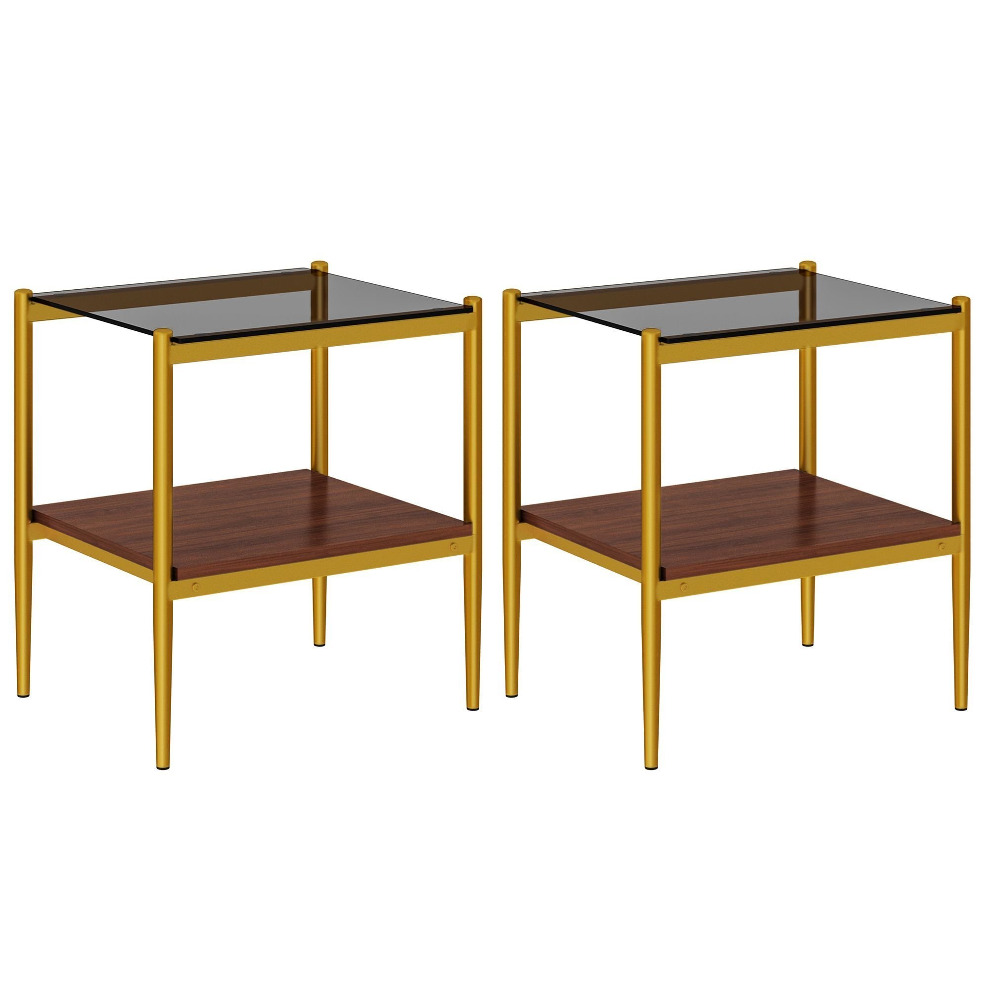 Elevate your living space with this elegant 3-piece table set, featuring a coffee table and two matching end tables. Each piece is topped with clear tempered glass, providing a sleek surface that's both stylish and easy to maintain. The open bottom shelves offer convenient storage or display space for books, décor, or everyday essentials. Gold-finished metal legs add a luxurious touch while ensuring durability and stability. This set blends modern sophistication with functional design, perfect for any contemporary or glam living room setup.