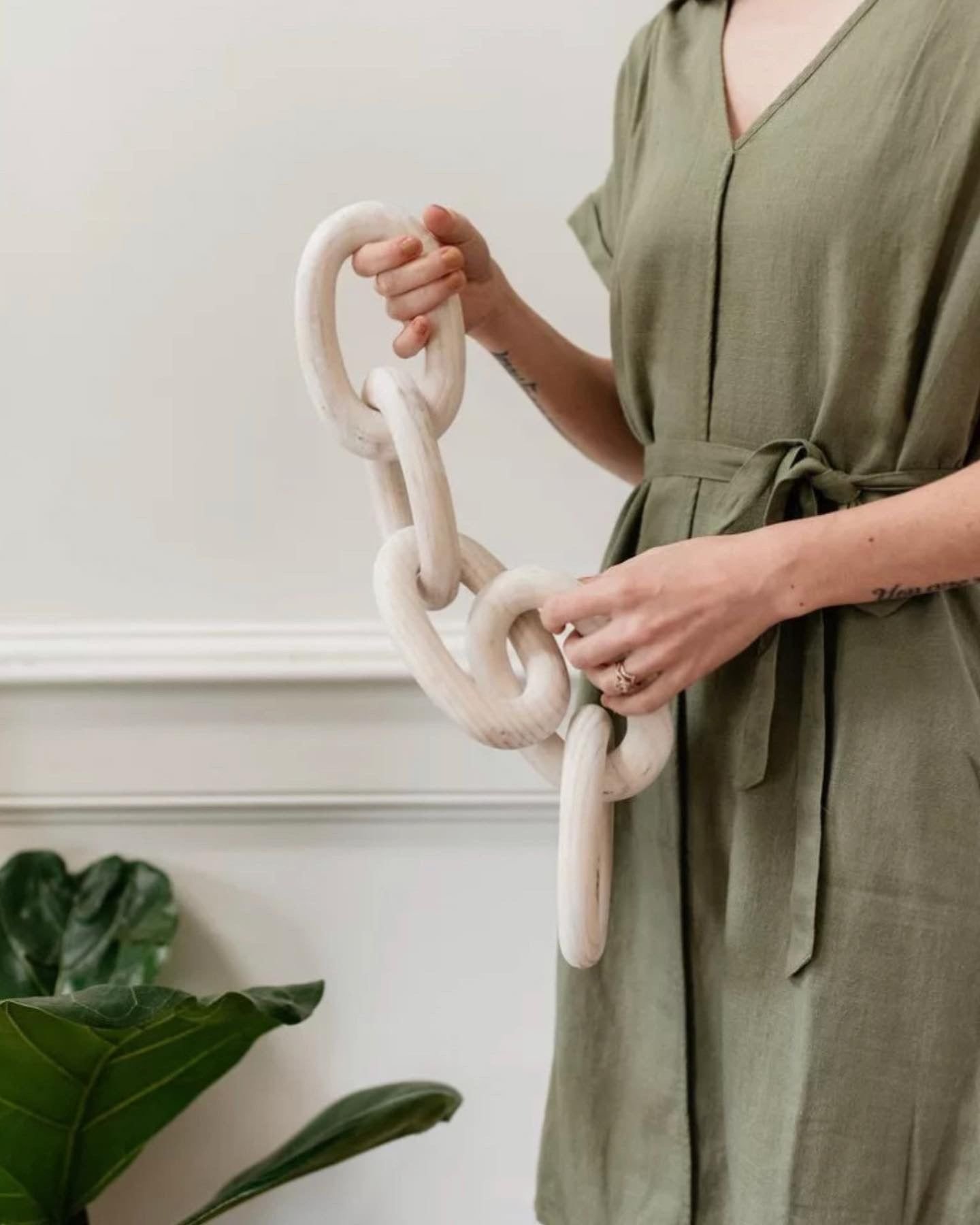 Elevate your home décor with these 5 Hand Carved Wood Chain Links, a perfect blend of rustic charm and modern style. Each chain is meticulously hand-carved from natural wood, highlighting the organic grains and textures that make every piece unique. This versatile decorative accent can be styled on coffee tables, bookshelves, or consoles for a touch of artisanal warmth. The neutral wood tones complement farmhouse, boho, coastal, and contemporary interiors effortlessly. A timeless decorative piece, these wooden chain links add depth and dimension to any living space.
