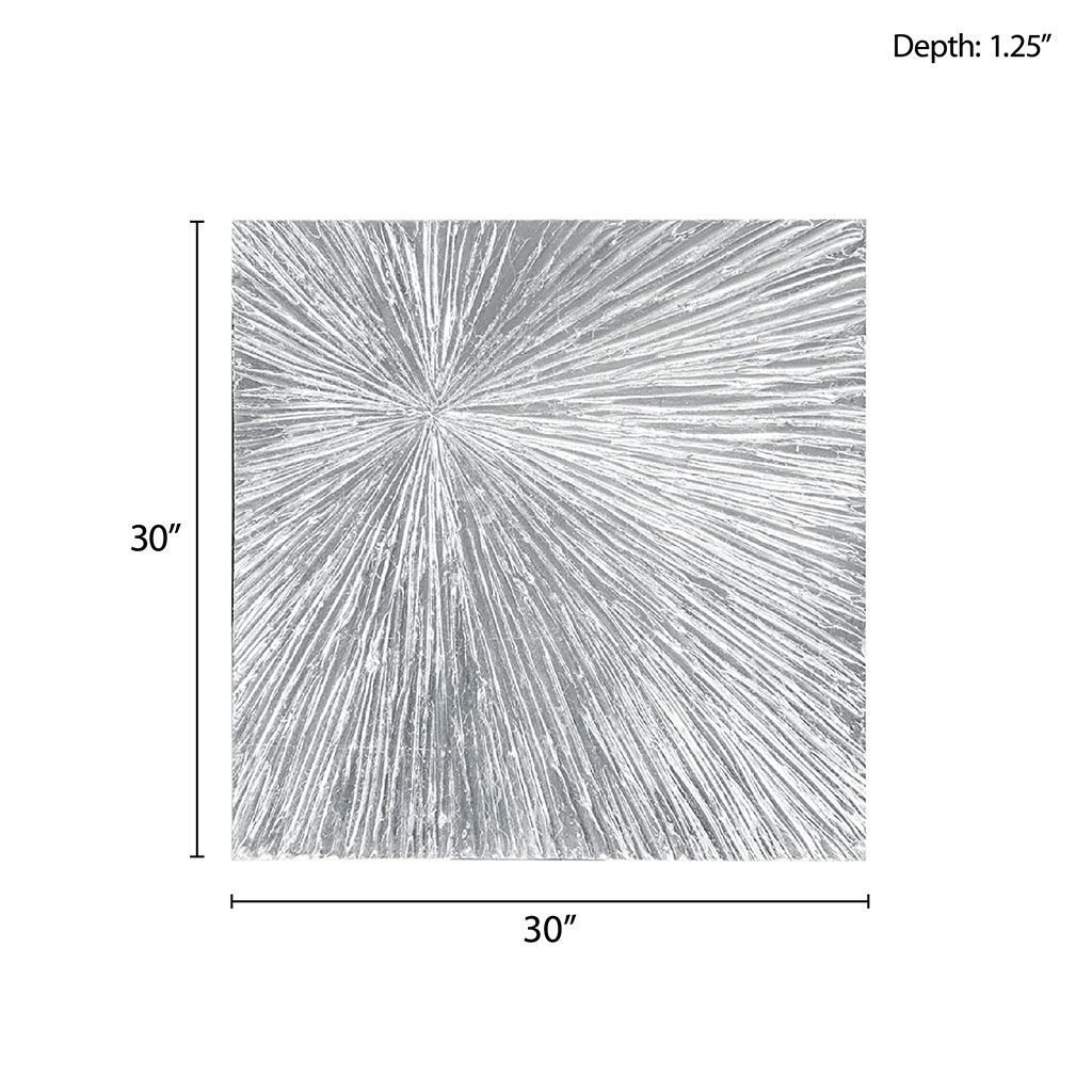 Bring a touch of contemporary elegance into your home with the Madison Park Modern Abstract Hand Painted Wall Art. This stunning piece showcases a dimensional resin design with a striking silver metallic burst effect that creates depth and visual intrigue. Hand-painted details add texture and uniqueness, making every piece one-of-a-kind. The abstract style easily complements modern, glam, or transitional décor, serving as a statement focal point for any wall. Perfect for living rooms, bedrooms, offices, or entryways, this wall art brings a sophisticated and artistic flair to your space.