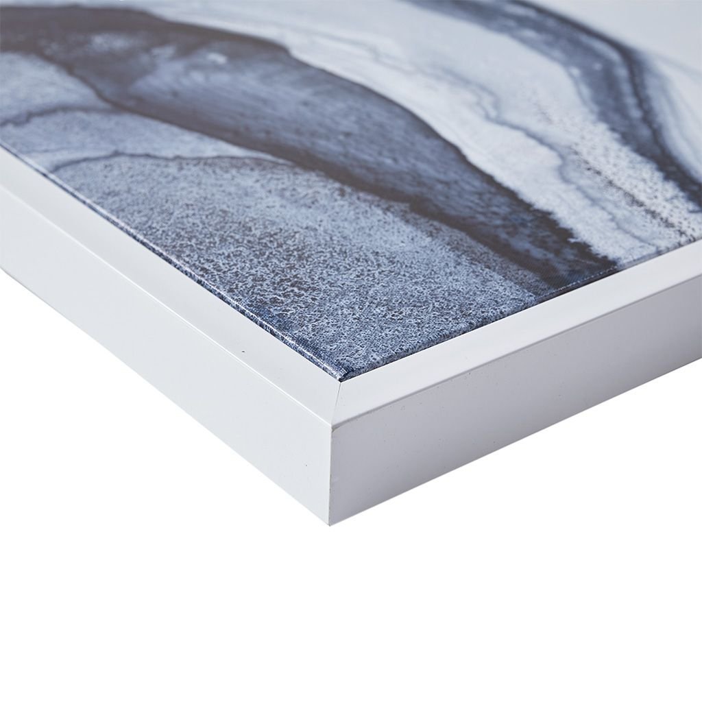 The Madison Park Ethereal Diptych 2-Piece Framed Canvas Wall Art Set by artist Megan Swartz offers a crisp and serene addition to any space. Featuring an abstract design in light and dark shades of blue, the artwork creates an icy cool contrast that brings a fresh, modern update to your decor. Each piece is enhanced with a gel coat finish, providing texture and a light glossy touch while also preventing fading over time. The white-colored gallery frames add a clean finish, and the included D-ring hangers make it easy to display the set together for a larger focal point or separately throughout your home.
