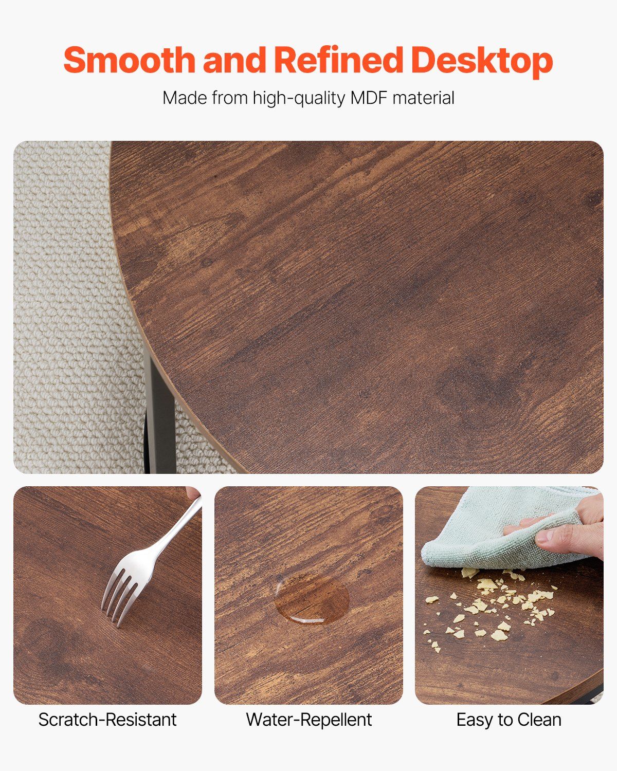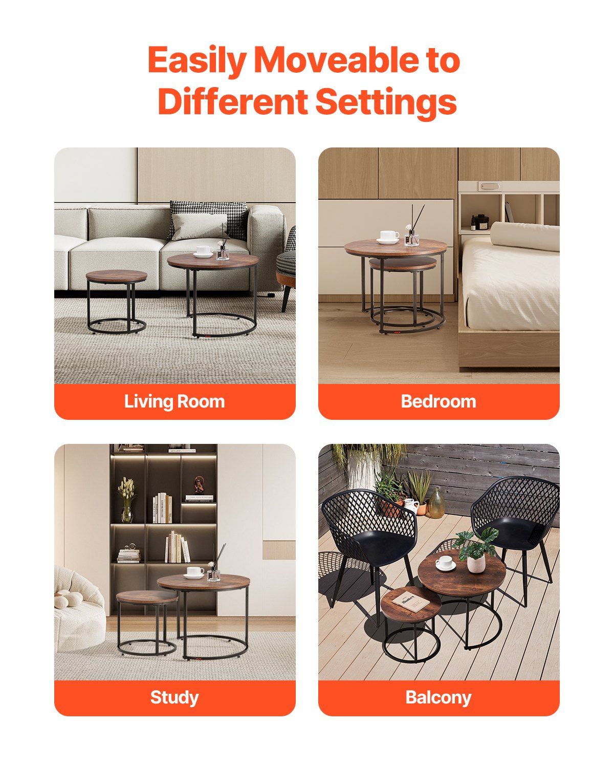 This VEVOR nesting coffee table set brings a warm, industrial-inspired look to your living space with its vintage brown tabletops. The black metal frames provide sturdy support while adding a bold, modern contrast. Designed for versatility, the nesting tables can be used together or separately and tucked away to save space when needed. The smooth tabletops are ideal for holding décor, drinks, or everyday essentials. Perfect for industrial, modern, or rustic interiors, this set combines functional design with timeless style.